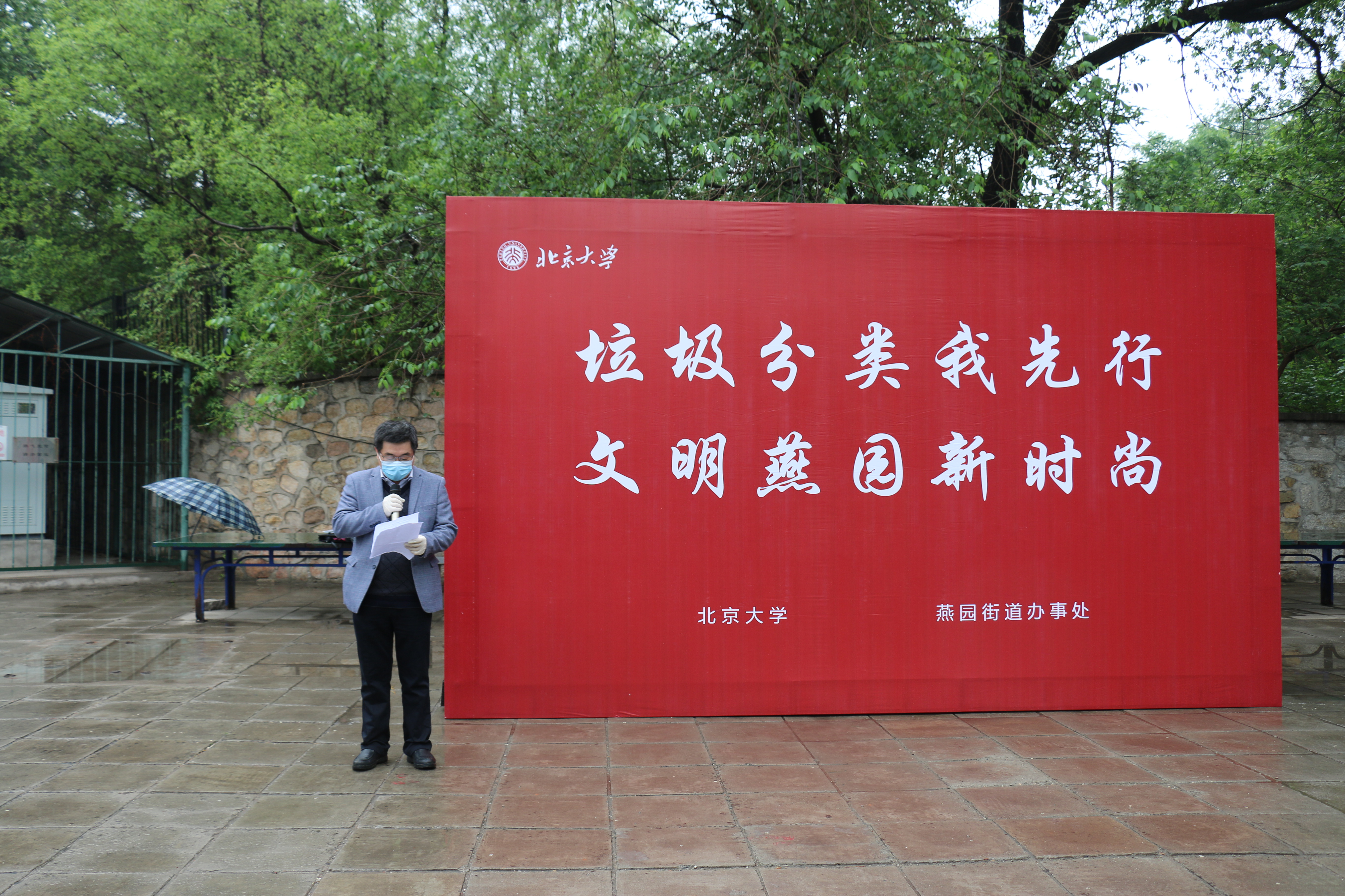 燕园街道党工委书记杨学祥首先代表街道宣读了燕园街道垃圾分类倡议书,呼吁大家行动起来,以身作则,率先垂范,努力争当垃圾分类的宣传者、实践者、监督者。
