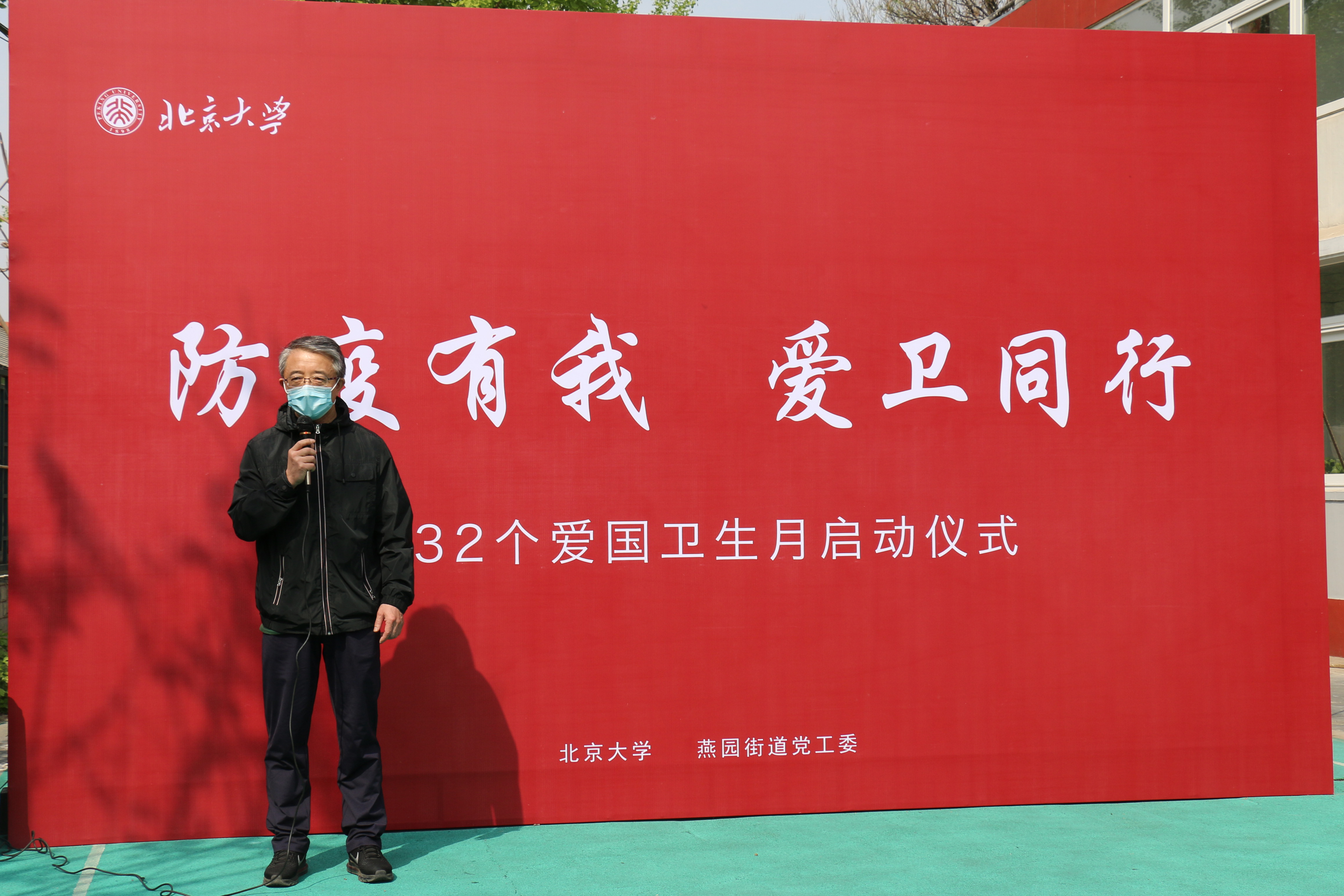 周志军在致辞中指出,三个月来,北京大学和燕园街道的党员干部、师生群众团结一心投身疫情防控工作,展现出坚韧不拔的斗争精神,付出了辛勤汗水,收获了可喜成绩。当前,北京市疫情防控已进入常态化,我们要做好长期应对外部环境变化的思想和工作准备。希望大家以本次活动为契机,持续开展好宣传动员,全面加强环境卫生整治,将爱国卫生运动融入基层治理,巩固来之不易的疫情防控成果。