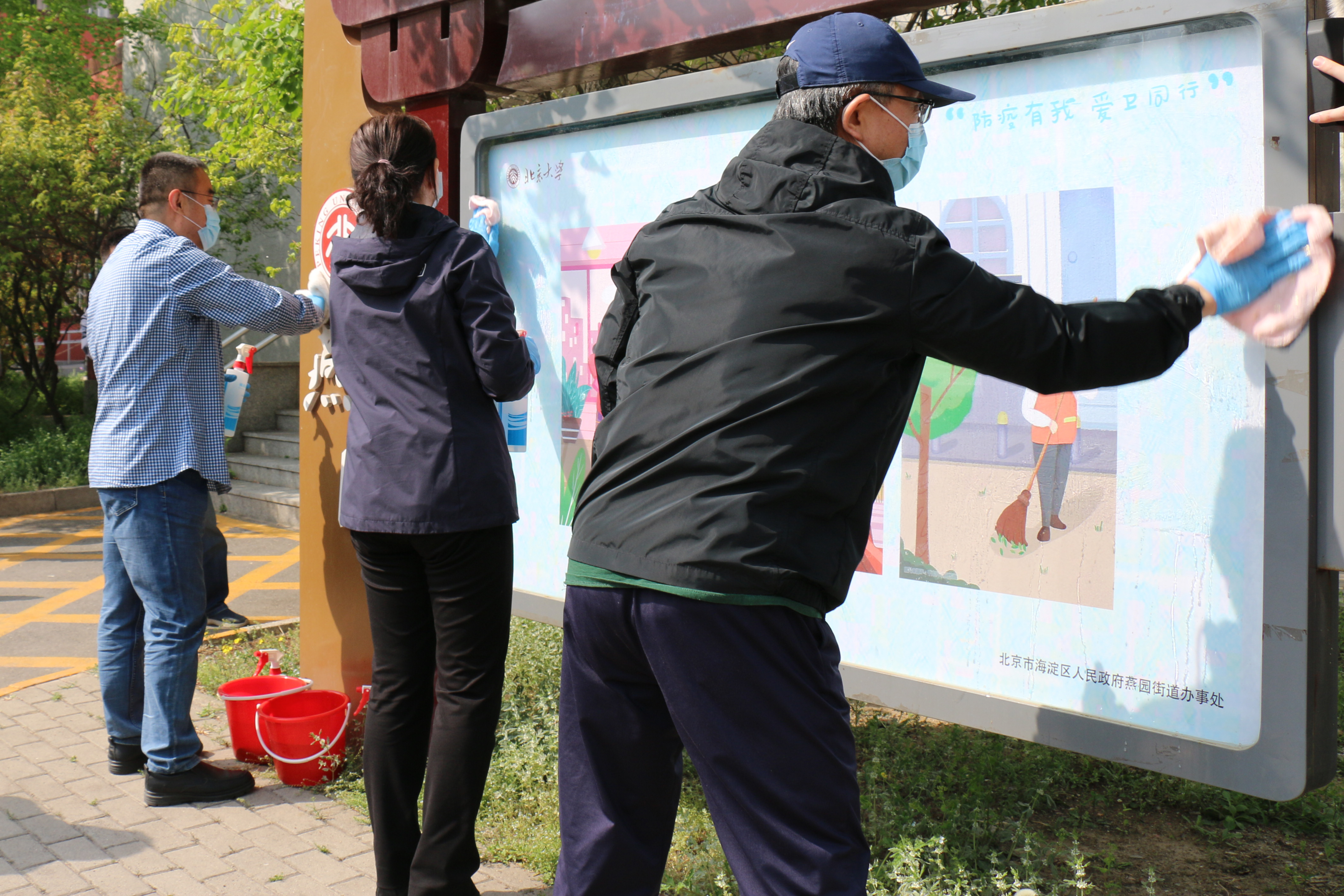 启动仪式结束后,与会人员来到畅春园社区参加城市清洁日活动,共同清理卫生死角,消杀公共区域,擦拭公共设施等。本次清洁日活动在蔚秀园、承泽园、中关园、燕东园、燕北园及校内社区同时开展,共计300余人参加。