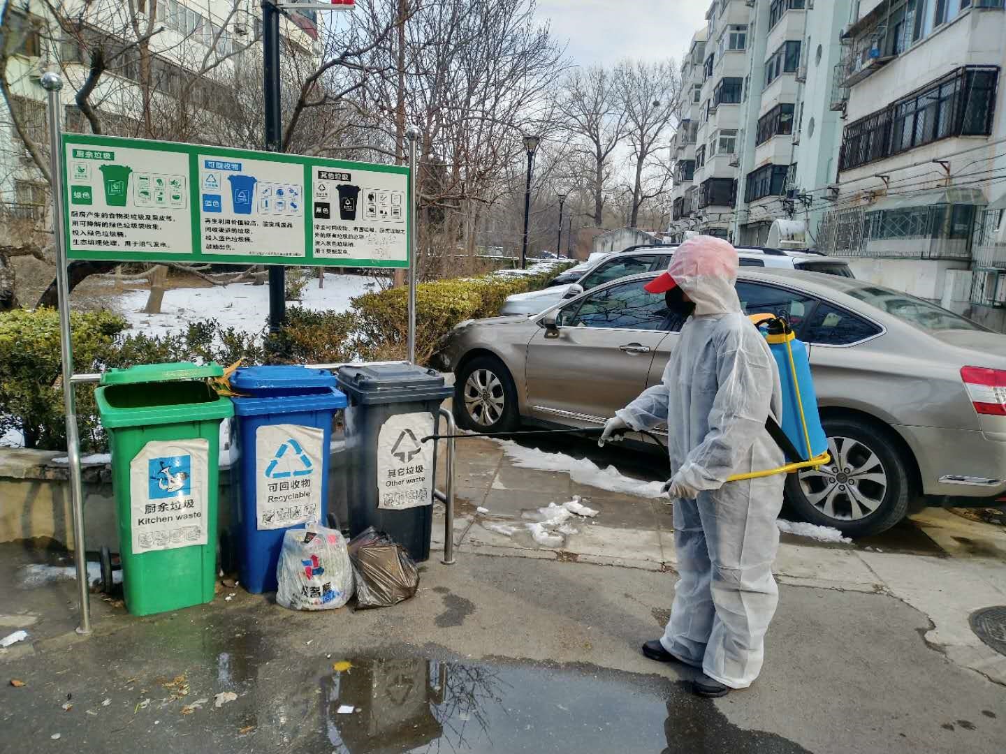 燕园街道延庆保洁队和东方军创清洁科技有限公司在疫情发生后迅速响应,大家纷纷主动中断休假,放弃春节与家人的团聚,坚守在抗击疫情的第一线。燕园街道合理配置工作人员,每日出动保洁员50人次、车辆6车次,对路面进行巡视、清扫作业,对公共区域的垃圾桶、公交站台进行消毒。保洁员对社区每个楼门、楼内扶手,甚至每户的屋门、脚垫都进行了消毒,同时做好社区公共场所的清洁和消毒工作,特别是针对门厅、楼道、电梯、楼梯等重点公共场所,加大消毒力度和频次。