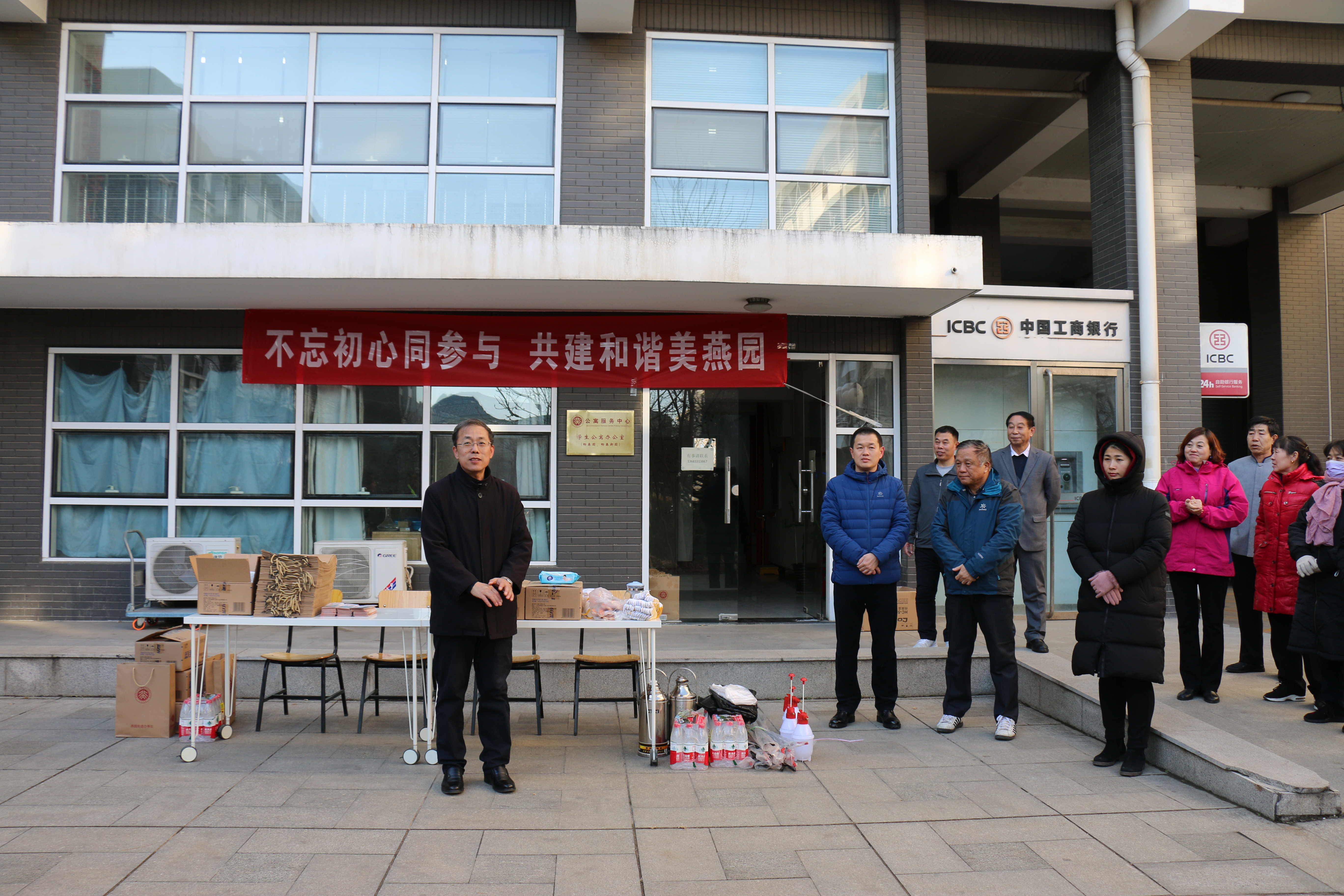 为进一步学习贯彻十九届四中全会精神,将“不忘初心、牢记使命”主题教育向纵深推进,为北京大学师生营造良好的学习、生活环境,2019年12月5日上午,燕园街道党工委联合保卫部、公寓服务中心、燕园派出所、燕园城管执法队在畅春新园广场举办“不忘初心同参与,共建和谐美燕园”环境整治主题党日活动。街道党工委副书记、办事处主任杨兴文,保卫部副部长、党支部书记张福旺,公寓服务中心副主任段利久等负责同志,以及燕园街道、保卫部、公寓服务中心、派出所、执法队等共计50余人参加了此次活动。