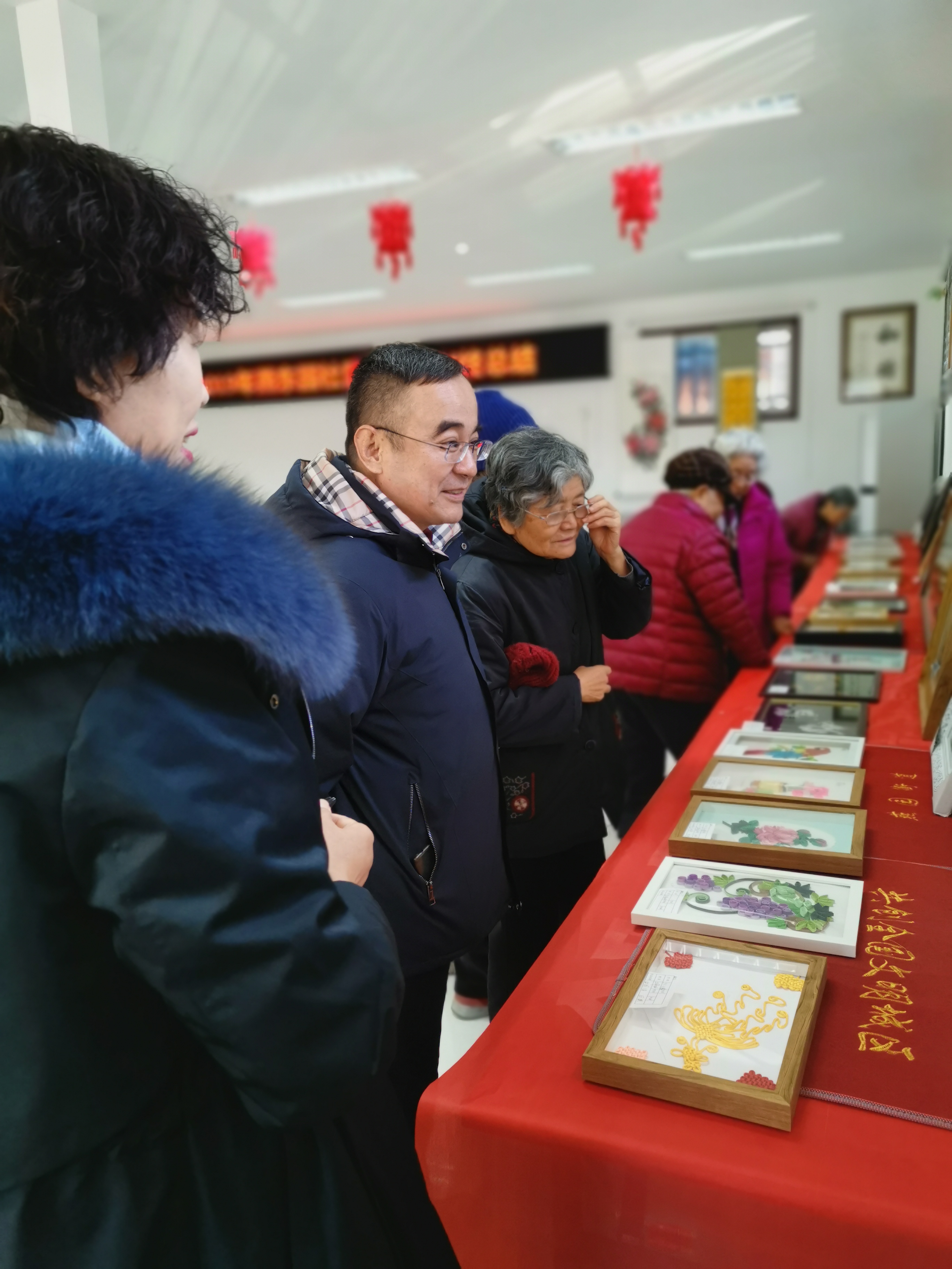 燕东园社区党支部委员董振兰老师说:“看了这次手工书画展,我深深的赞叹老师们的心灵手巧,题材新颖,选材精细,使我们观众产生一种心灵上的共鸣。”