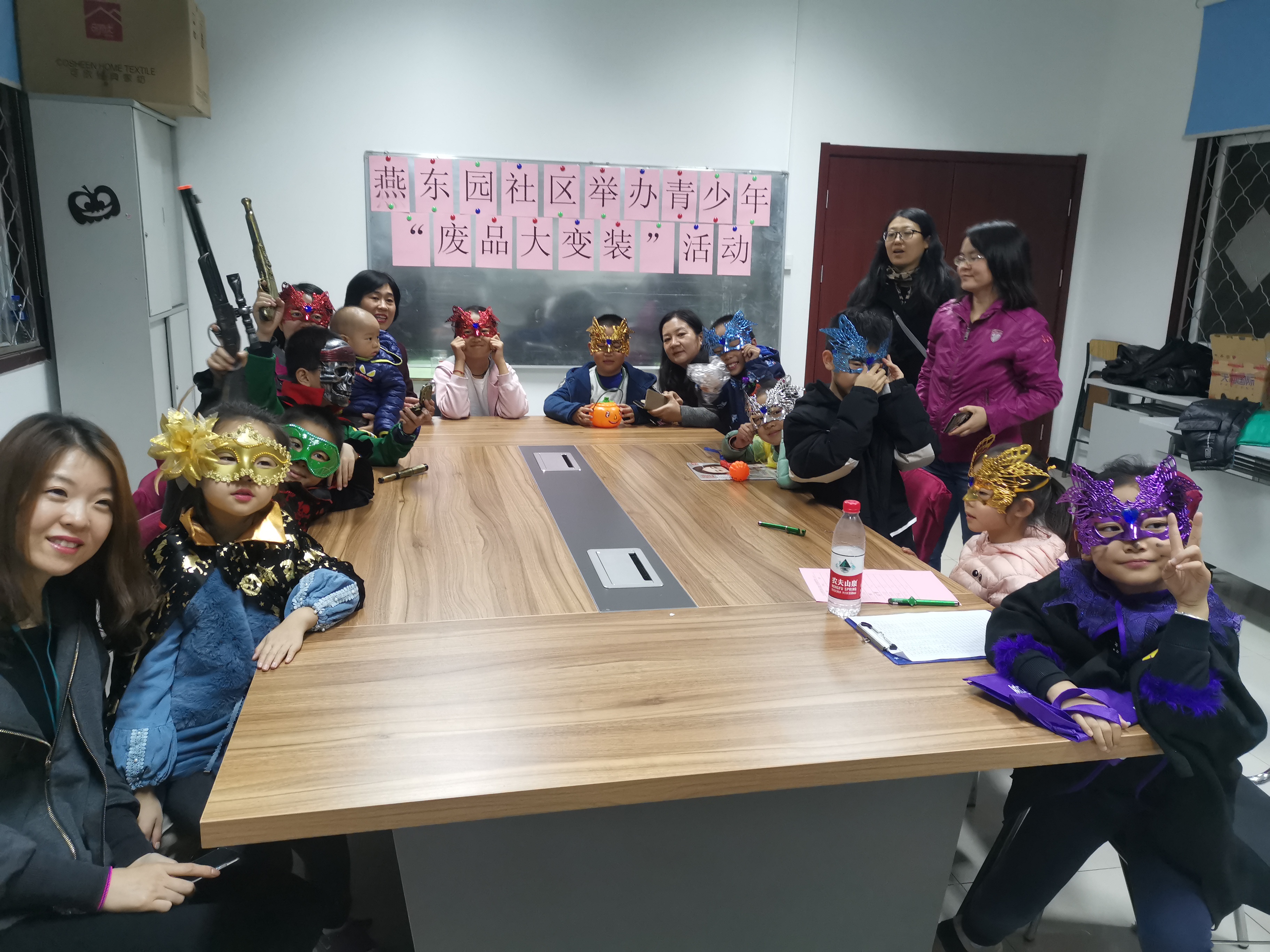 10月31日,燕东园社区在社区阅览室组织举办了青少年“废品大变装”活动,利用废旧物品制作万圣节盛装,倡导节俭美德。社区30余名孩子及家长参加了此次变装活动。