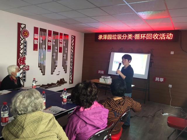 在垃圾分类一周年即将来临之际,为进一步推动社区垃圾分类工作,使居民能够积极参与垃圾分类,让“绿色、低碳、环保”理念深入人心,共建和谐宜居的人居环境,4月23日下午,燕园街道在承泽园社区组织开展社区垃圾分类循环回收活动。北京大学城市与环境学院副教授童昕、环境科学与工程学院副教授韩凌、燕园街道城管办、社区居委会相关负责同志、居民、学生代表等30余人参加了此次活动。