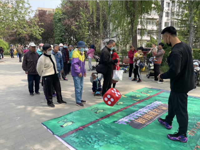 此次趣味运动会活动,居委会提前一周在居民群发出通知,在进出卡口及宣传栏张贴海报,让此次运动会得到广泛宣传。上午9点多,居民们均已到达现场,大家有序排队签到,领取入场券,耐心等待活动开始。10点整,活动准时开始。首先由燕北园社区王慧丽主任介绍活动项目及规则,并叮嘱各位老师一定注意安全。随后老师们自行选择项目参加,此次运动会共设置四个项目,即投掷飞镖、投壶、投骰子、套圈,所有项目运动强度适宜,均能很好的训练大家的手眼协调能力,特别是套圈项目,深受居民的喜爱。
