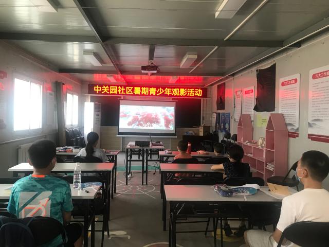 快乐的暑假开始啦!为丰富园区青少年的暑期文化生活,激发辖区青少年的爱党、爱国、爱军的情感,中关园社区于7月21日上午9:30在社区活动室举办了暑期青少年观影活动。