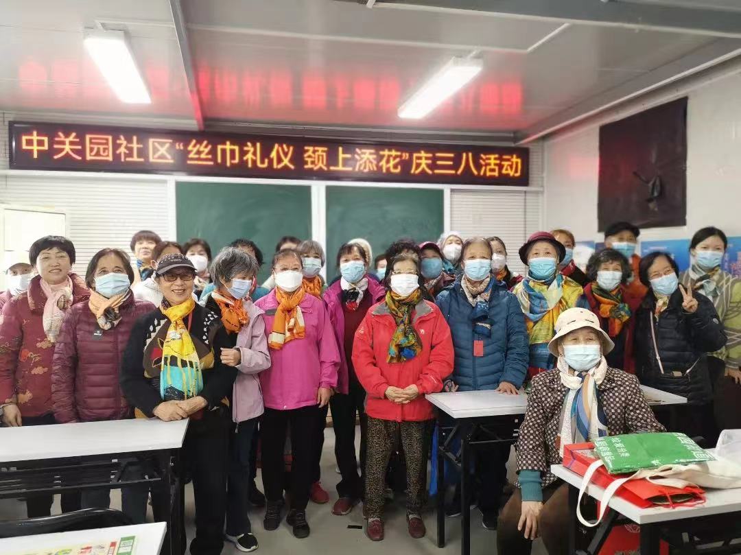 3月6日上午,中关园社区工作人员在新时代文明实践站为现场参加活动的女同胞发放了一条精美的丝巾,特邀讲师为大家讲解丝巾文化,现场演示丝巾的系法与搭配。大家跟着老师的步骤,不一会儿功夫,漂亮的丝巾就像春日里的花朵,绽放在脖领处和肩膀上,真正实现了“颈”上添花。