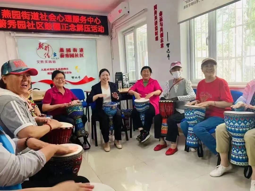 “心随鼓动”,燕园街道社会心理服务中心开展居民鼓圈、正念解压活动