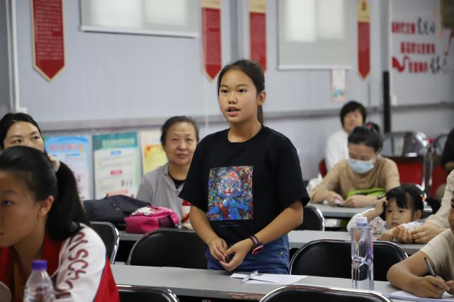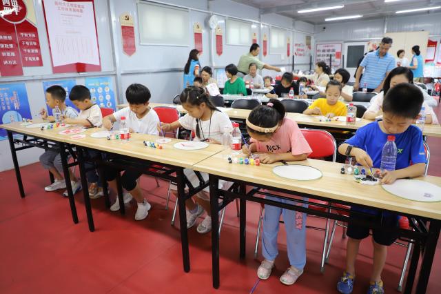 为了鼓励家长和青少年用自己的方式表达对祖国的热爱,将爱国情感化为具体行动,社区工作人员现场发放材料,让大家通过绘画团扇的方式分享本次讲课想法与收获。通过大家的自由创作,太阳、大山、向日葵、树木、绿草、鲜花等一系列寄托着美好寓意的形象纷纷呈现在了扇面上。68岁的崔爷爷在一旁给完成创作的孙子拍照留念,他赞许道:“活动特别好,他妈妈看见活动通知就马上为他报名了。我们从小很看重对孩子的爱国主义教育,别看孩子年龄小,但他记忆力好,很多知识点听了就能在脑海里形成印象。”