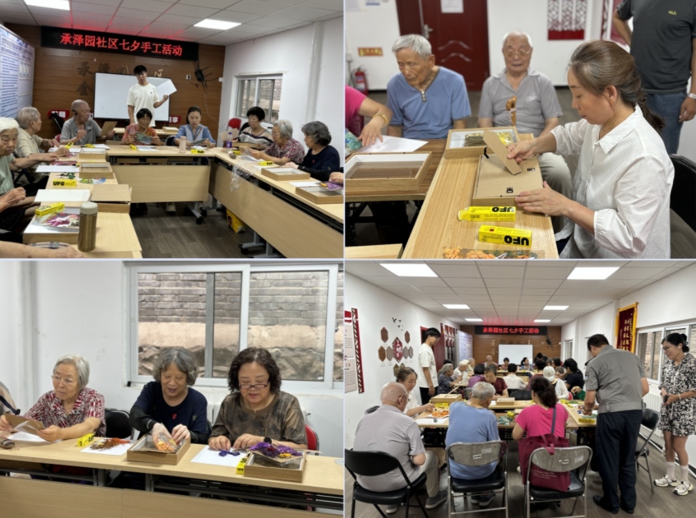 牛郎织女,千年守望,诉说着中国最浪漫的爱情传说;织锦为桥,跨越银河,见证了爱情的坚贞不渝。8月9日,承泽园社区举办了一场别具意义的七夕手工永生花相框制作活动,老人们挑选喜欢的永生花,搭配精美的装饰,通过和相框相结合,让情感定格,让爱永不凋谢。在温馨的氛围中,大家彼此分享自己的故事,重温年轻时情感的美好时刻,充满了对生活的热爱与感激。