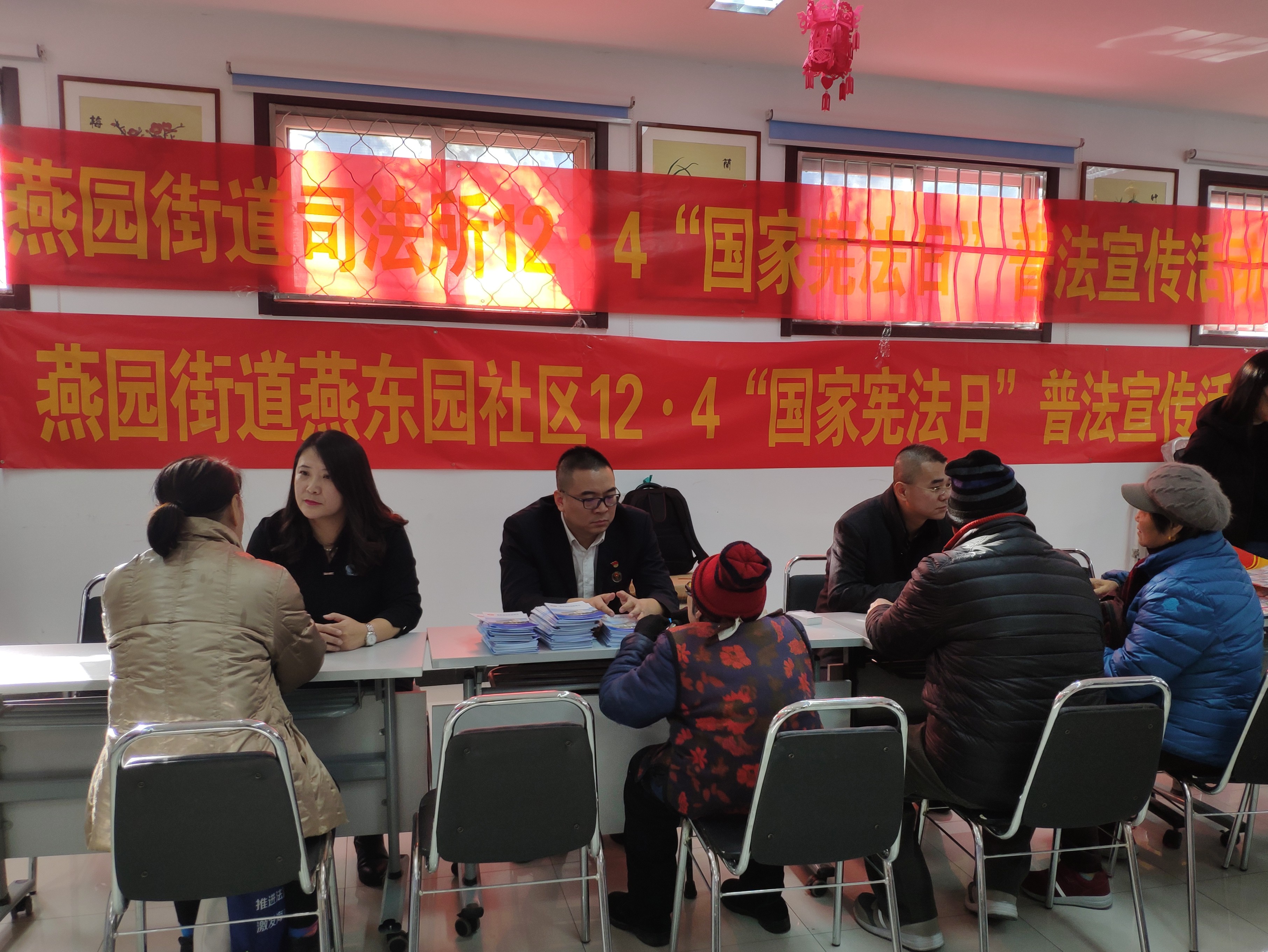 为认真宣传贯彻党的十九大精神,深入落实依法治国理念,推进燕园街道的普法工作向纵深发展,积极推进依法行政和校园社区法治建设,着力培养辖区居民的法律意识,12月4日,燕园街道分别在7个社区开展一系列普法宣传活动。参加此次系列宣传活动的人员包括燕园街道领导班子成员、机关各科室、司法所、执法队等各派驻队所、7个社区居委会以及社区居民,另外还包括公证处、百瑞律师事务所、龙佑律师事务所工作人员等,共计300多人。