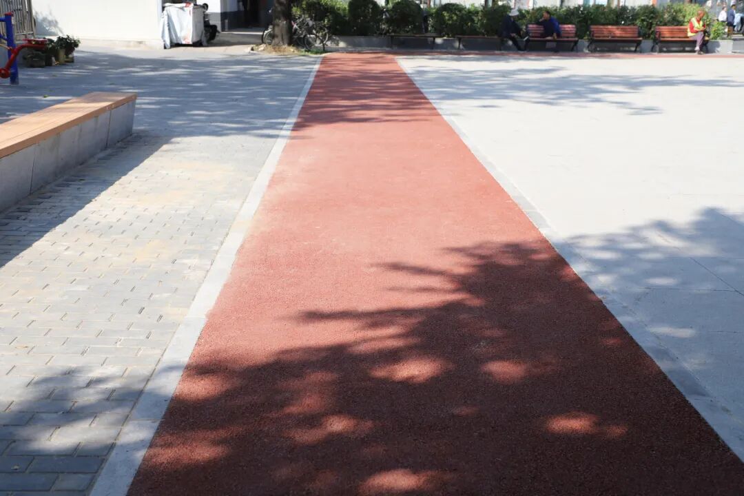 改造期间,常有居民绕着施工围挡张望,碰到社区工作人员就主动询问进度:“啥时候能弄好呀?”这些期待的目光,成了推动改造顺利推进的动力。9 月初,施工围挡正式拆除,崭新的广场一亮相就“圈粉”无数:当天,不少小朋友在儿童活动区玩耍;早晚时分,绕广场一周的步道上满是健步走锻炼的居民;坐着聊天晒太阳的居民自在惬意;社区太极队第一次在平整的广场上练拳,不用再迁就场地大小,动作舒展又整齐。