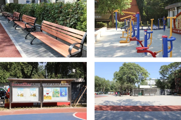 除了地面改造,硬件设施也迎来“升级”:健身架、旧座椅重新规划位置,新增设长条座椅,让居民在此能够舒适休憩、自在锻炼;广场里的宣传栏、党建宣传小品、标识牌重新布局,让内容更清晰;原有的绿化带进行改建,既保留了绿意,又让广场视线更通透;裸露的土地上补种了各色花卉,待花开时节,将成为社区里的一道风景线。