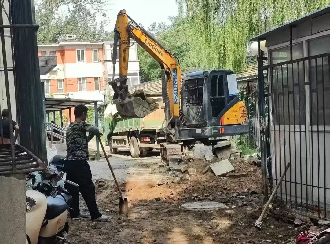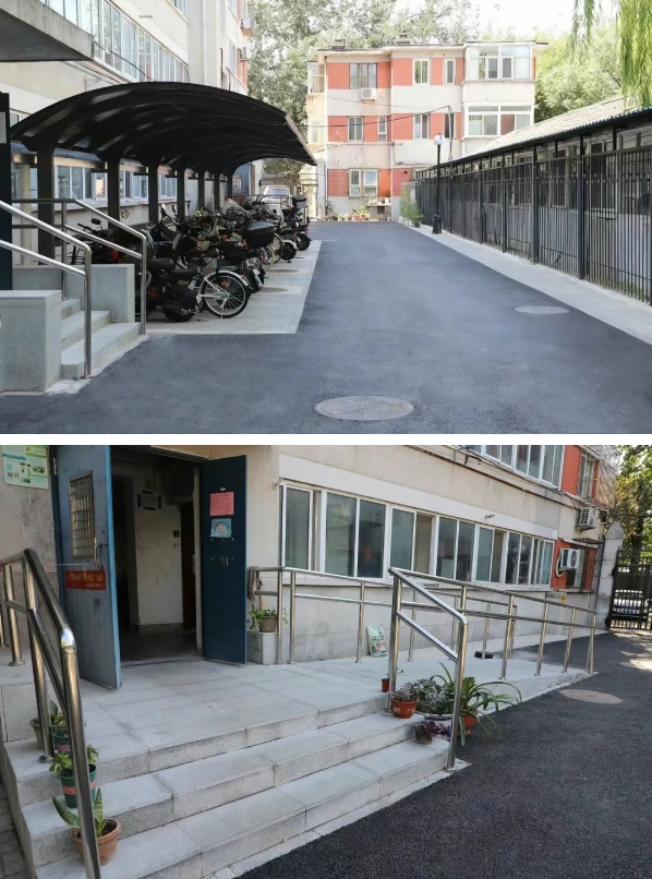 改造的夏天,火热而有序。施工前,社区特意提前通知了可能受施工影响的住户,让大家做好准备。居民韩老师得知消息后,满心欢喜地说:“这真是在炎热的夏天给7甲楼居民办了件实实在在的大好事!改造后遇雨不积水,出行也能更顺畅!”崎岖坑洼的老旧道路,逐渐焕发出崭新的容颜:原有的大方砖路面被拆除,平整的沥青混凝土覆盖了坑洼,自行车棚范围内的地面重新铺设了透水砖,建筑散水也得到了修复,新改造的车棚整洁又美观。